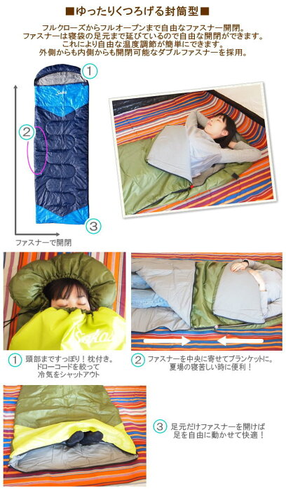1.1kgはこちら 1.35kgはこのページ ・Spec 商品名 Solid Earth シュラフ定型ホローファイバー 1.35kg 素材 表・裏生地:190Tポリエステル 中綿:定型ホローファイバー サイズ w約75cm×d約220cm 収納時:直径約22cm×h約36cm 重さ 約1.35kg 備考 快適温度:10〜20度 使用下限温度:5度 洗濯機のご使用可能。