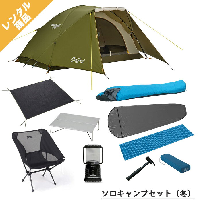 【レンタル】ソロキャンプセット〔冬〕テント・テーブル・チェア・寝袋マット・シュラフ・ランタン・グランドシート 冬におすすめWS1