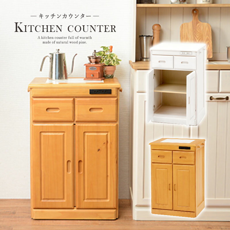 送料無料 キッチンキャビネット キッチンカウンター テーブル 幅47 キッチン 収納 キャスター付き コンセント付き ロータイプ 収納棚 レンジ台 キッチン収納 引き出し カップボード キッチンラック キッチンボード 台所収納 木製 ホワイト ナチュラル MUD-6520NA