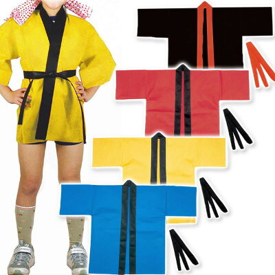 Cサイズ 幼児向け カラー不織布ハッピ 園児用 黄 青 赤 黒(襟:赤) / 法被 祭り ダンス 衣装 イベント 学芸会 よさこい ヨサコイ アーテック artec【ゆうパケット対応】
