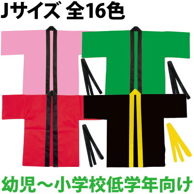 法被 子供 不織布 ハッピ (帯付) Jサイズ 幼児〜小学校低学年向け キッズ 小学生 はっぴ 祭り 運動会 体育祭 発表会 男の子 女の子 赤 青 黄 緑 ピンク 白 黒 紫 学芸会 お遊戯会 衣装 エイサー よさこい ソーラン節 保育園 幼稚園