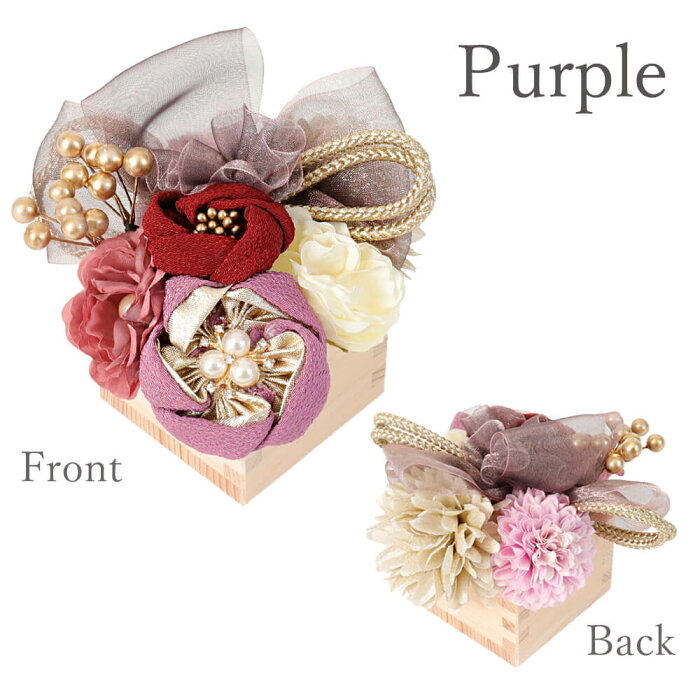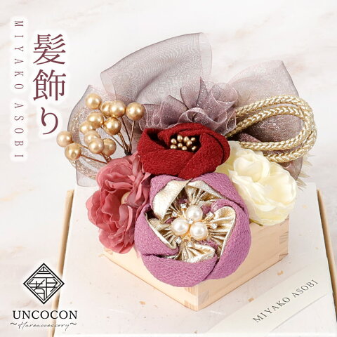 髪飾り ヘッドドレス つまみ細工 ちりめん リボン 成人式 パープル 紫 花かんざし Uピン セット 袴 振袖 着物 和装 花