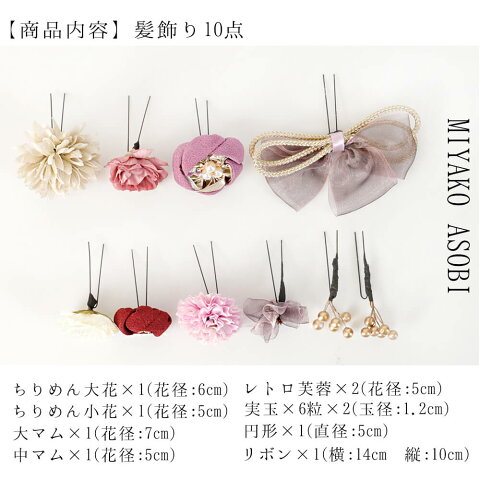 サイズちりめん大花×1(花径:6cm)ちりめん小花×1(花径:5cm)大マム×1(花径:7cm)中マム×1(花径:5cm)レトロ芙蓉×2(花径:5cm)実玉×6粒×2(玉径:1.2cm)円形×1(直径:5cm)リボン×1(横:14cm 縦:10cm)※ひとつひとつ手作りのため、多少仕様やサイズ(約)が前後、異なる場合があります※商品加工の過程上、小さなキズや糊跡等が致し方なく見える場合がございます。