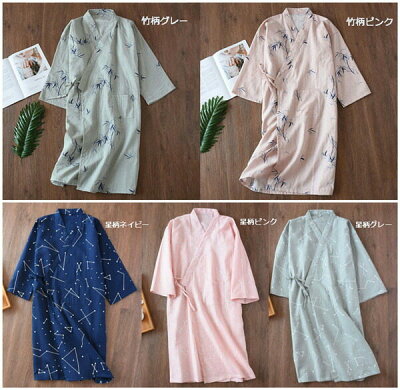 ルームウェア パジャマ 寝巻き 男女兼用 ガーゼ 浴衣 ガウン お風呂上がり 長袖 バスローブ レディース メンズ 長袖 星柄 竹柄 綿 2重ガーゼ 前開き 夏素材 旅館 温泉 介護 通気性 涼しい 部屋着 お家時間 柔らかい 着心地いい プレゼント ピンク グレー dh093c0c0jc