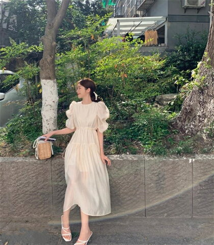 韓国ファッション ワンピース 受け取って腰 パフスリーブ ロングスカート【素材】ポリエステル コットン【カラー】ブラック,オフホワイト"サイズ:S 着丈:約117cm 袖丈:約48cm 肩幅:約33cm バスト:約98cm ウエスト:約98cm M 着丈:約118cm 袖丈:約48.5cm 肩幅:約34cm バスト:約102cm ウエスト:約102cmL 着丈:約119cm 袖丈:約49cm 肩幅:約35cm バスト:約106cm ウエスト:約106cm※サイズについては2-3センチの誤差があります。