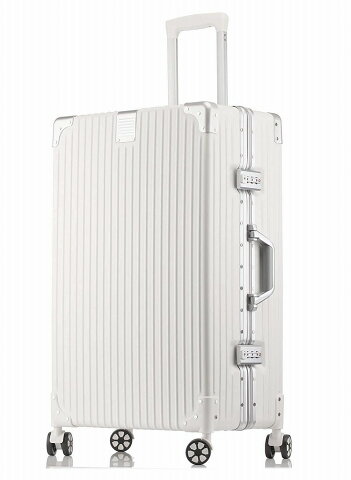 商品名 縦ストライプ スーツケース アルミフレーム 2XLサイズ ホワイト 商品説明 【メイン素材】ABS樹脂+ポリカ(PC)+アルミフレーム。