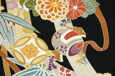 京友禅黒留袖 大輪の菊に松竹梅、熨斗に打ち出の小槌 105-f4105【楽ギフ_包装】