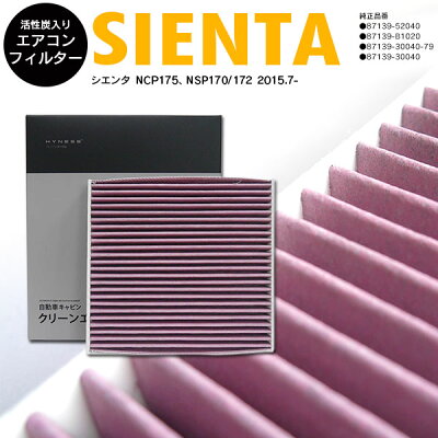トヨタ シエンタ NCP175、NSP170 172 2015.7- 全車/ハイブリッド含む 87139-52040 DCC1009/014535-0910 高品質 活性炭 エアコンフィルター エアフィルター抗菌 消臭/脱臭 花粉 PM2.5対策【送料無料】