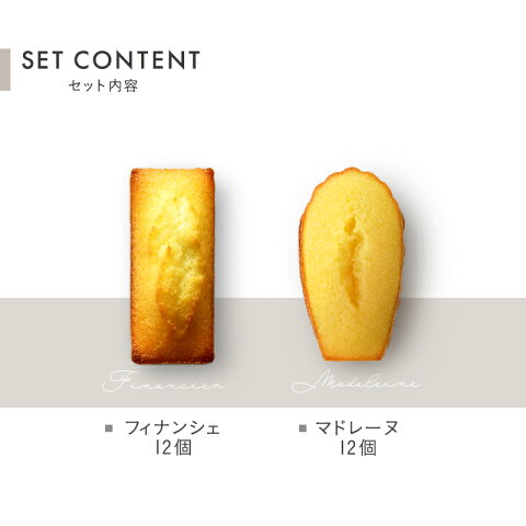 内容量 フィナンシェ 12コ、マドレーヌ 12コ 賞味期限 発送日から14日以上 保存方法 直射日光や高温な場所をさけて保存してください。