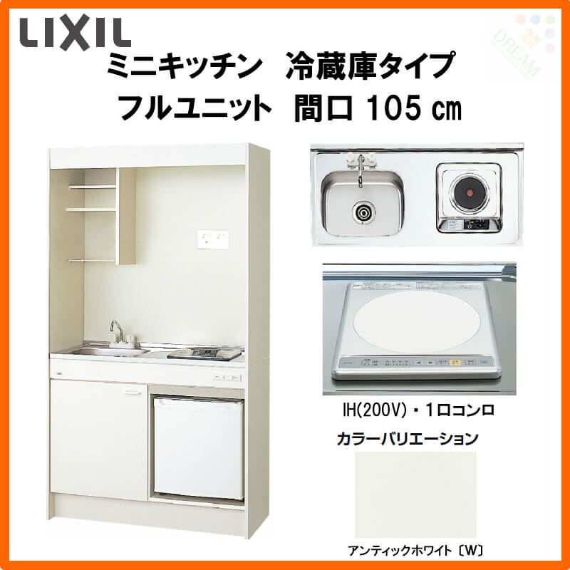 【エントリーでP10倍※8/31迄】 LIXIL ミニキッチン フルユニット 冷蔵庫タイプ 間口105cm(1050mm) IHヒーター200V DMK10LFW(B/E)(1/2)F200(R/L) 冷蔵庫付きでの注文可能 コンパクトキッチン 流し台 kenzai