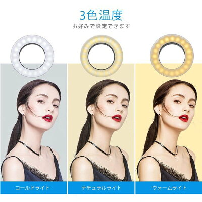 即納 LEDリングライト 自撮り用ライト クリップ式 2個セット iPhone/Android スマホ 対応 ブラック 3色モード 無段階調光 LED ライト